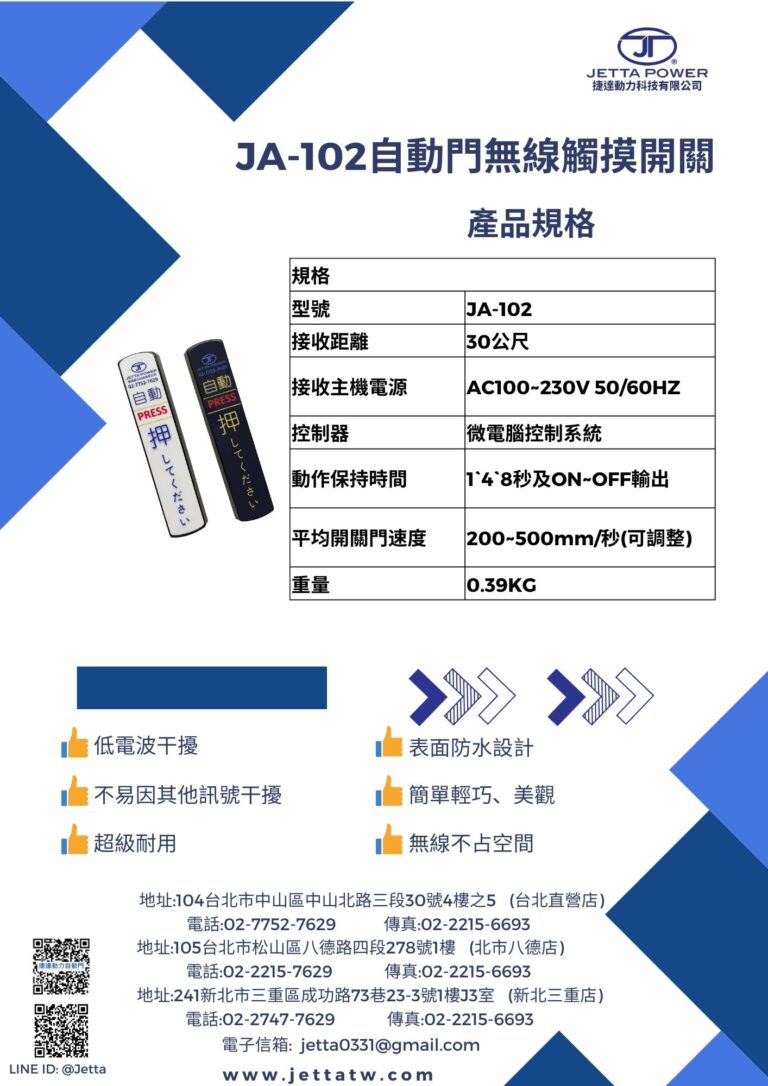 JA-102無線觸摸開關 靈敏觸控技術 X 便利 X 自動門啟動體…