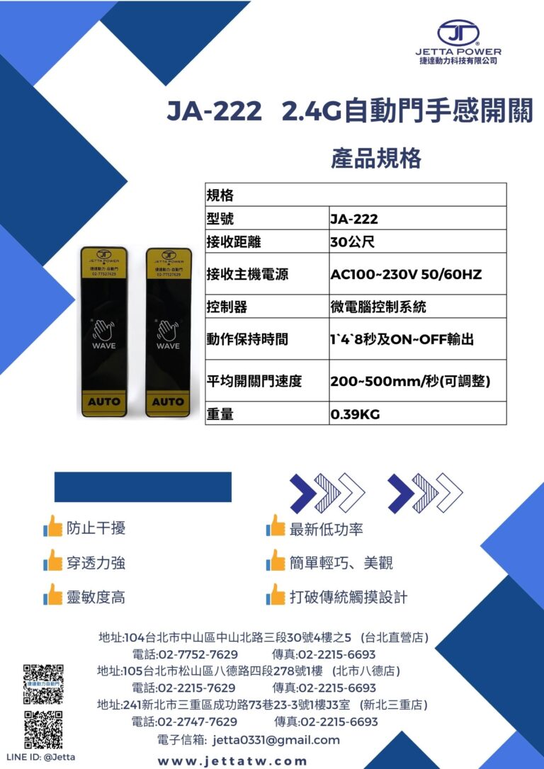 JA-222 2.4G感應式開關 無線操控 x 智慧開門新境界 產品規…