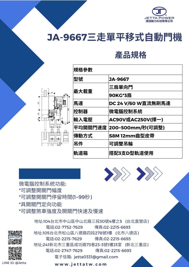 JA-9667三走單平移式自動門 微電腦控制系統功能:可調整開…