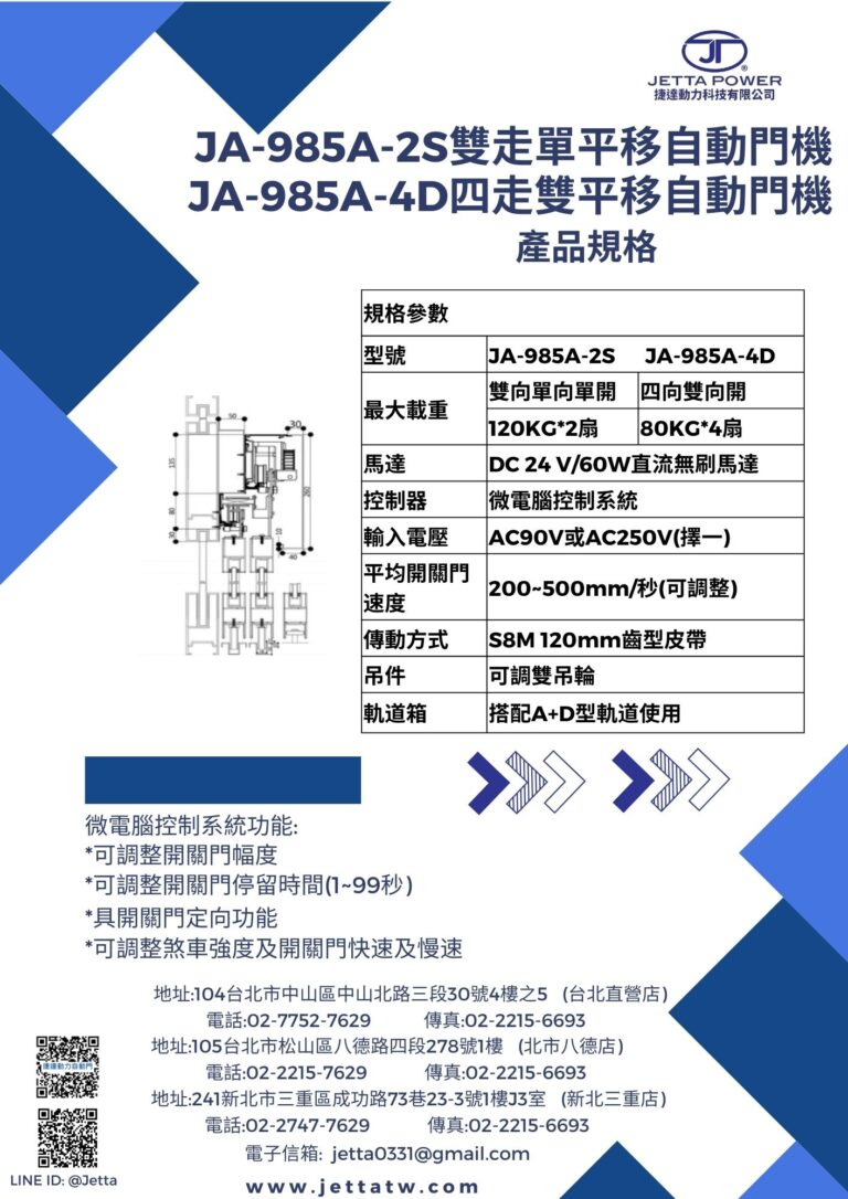 JA-909外掛90度自動門 微電腦控制系統功能:可調整開關門幅…
