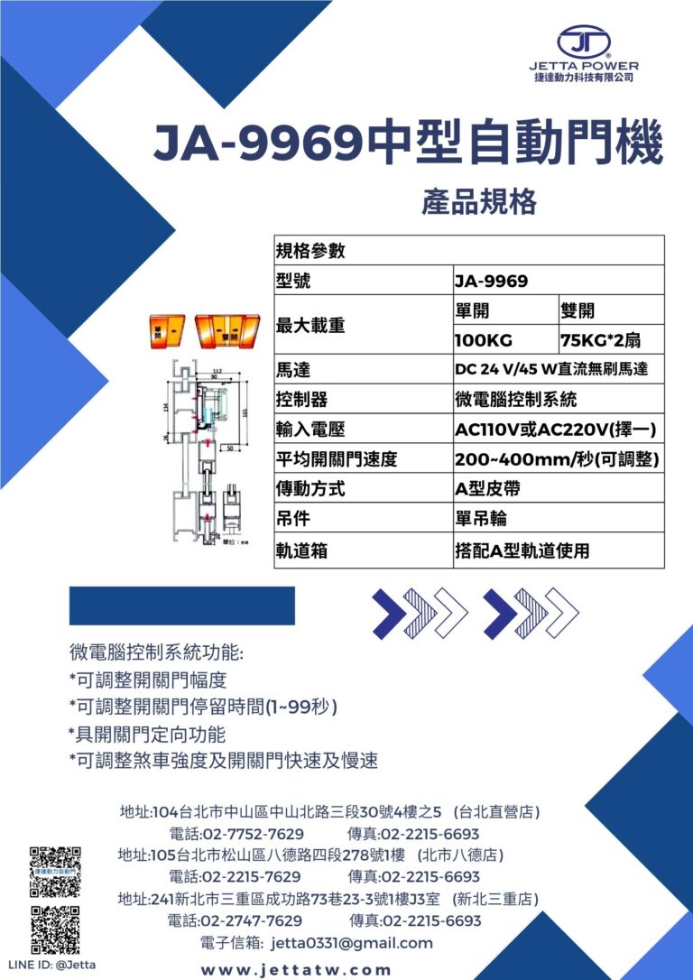 JA-9967 輕型玻璃自動門集結了平價與美觀,通用性極高,吊…