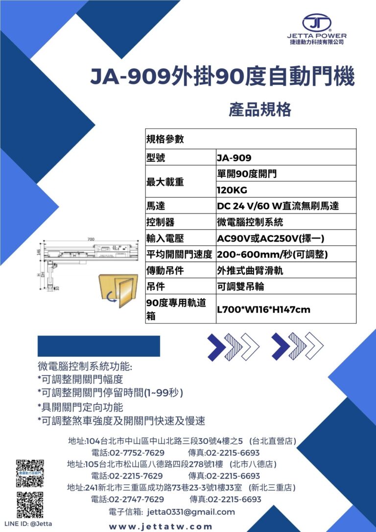 JA-909外掛90度自動門 微電腦控制系統功能:可調整開關門幅…